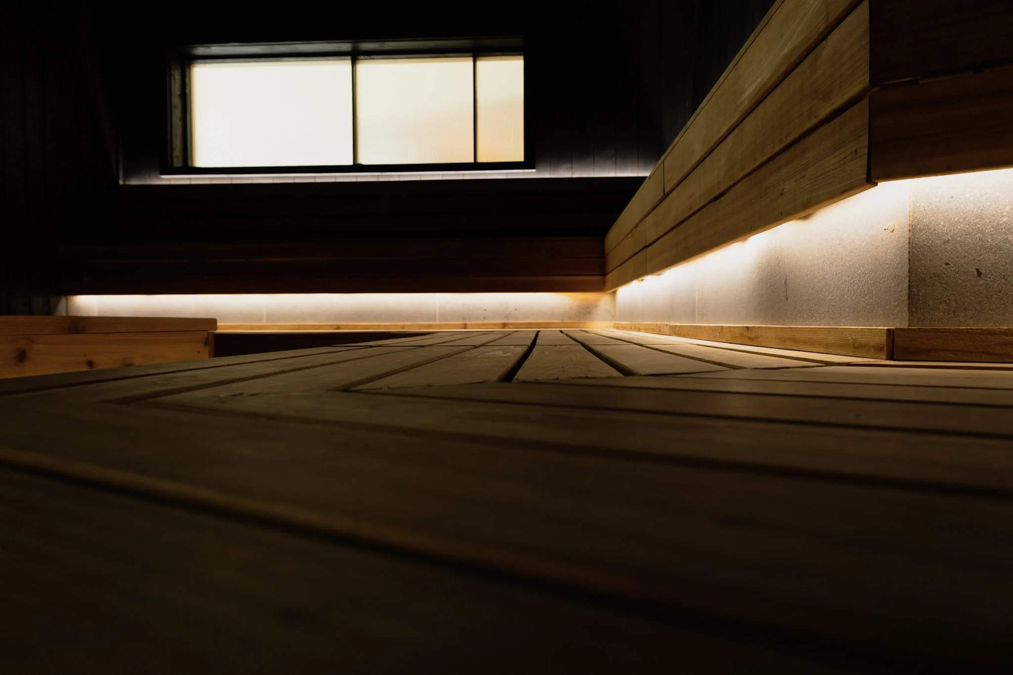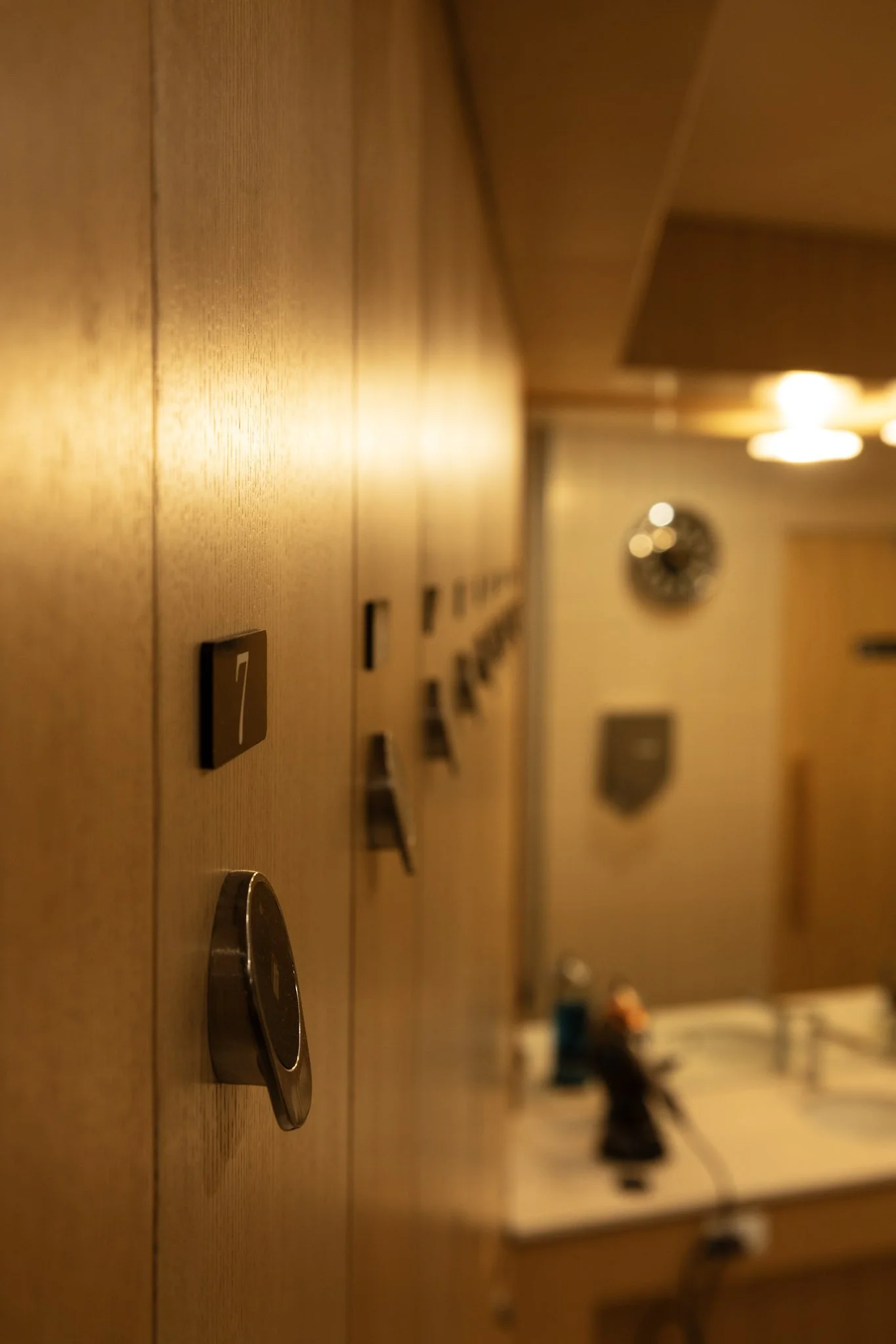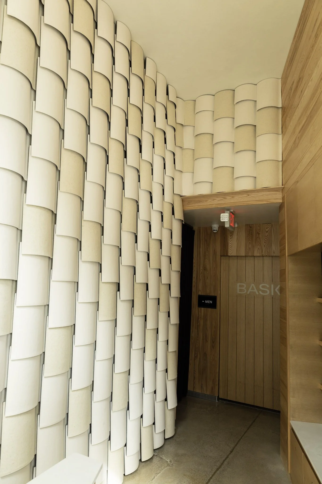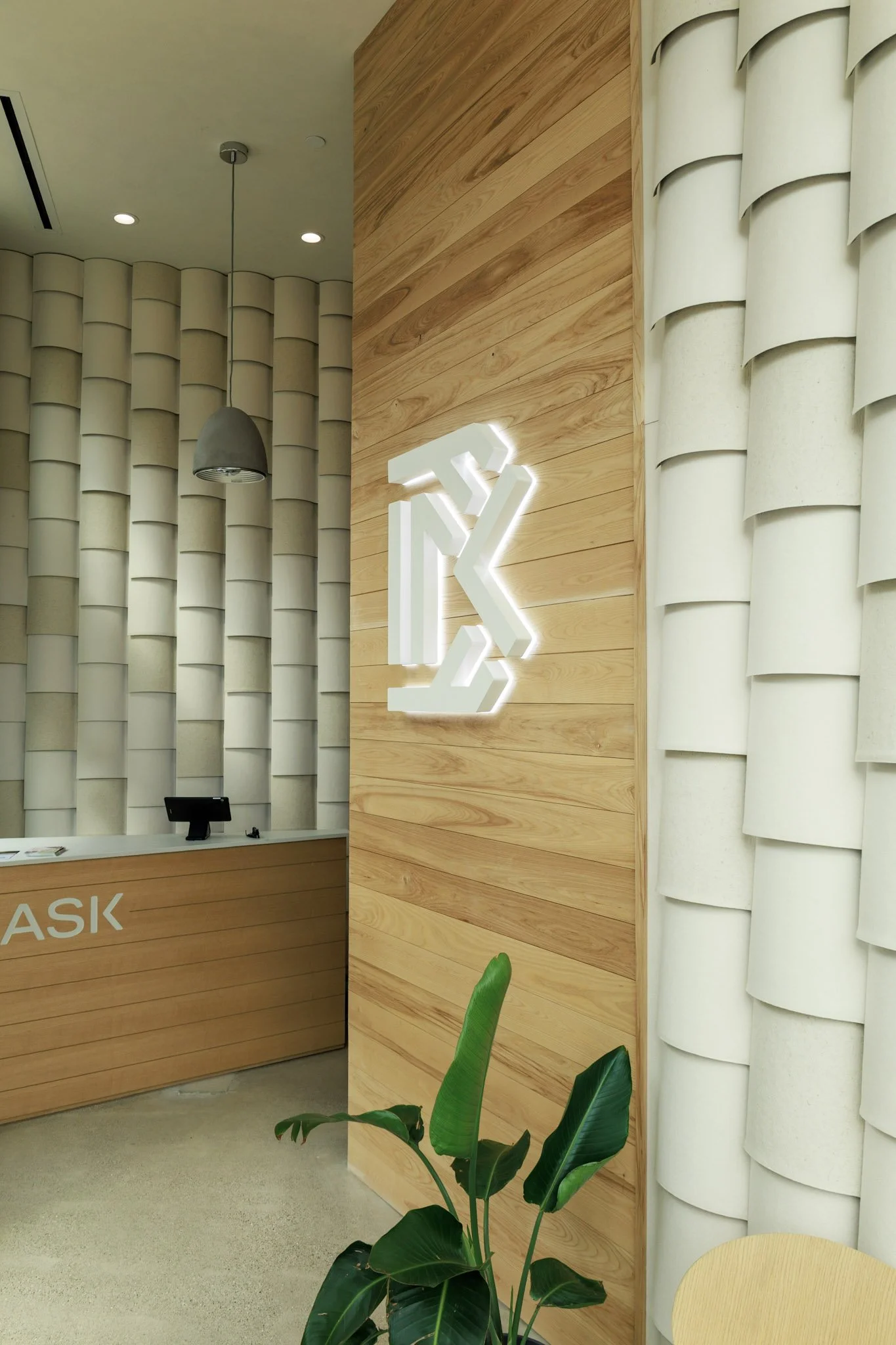 This high-end health spa features custom ash wood walls and ceilings, state-of-the-art sauna rooms, cold plunge installations, and sleek modern cabinetry. Every element was precisely crafted, including integrated benches, lighting, and built-in storage that bring function and beauty to the space.